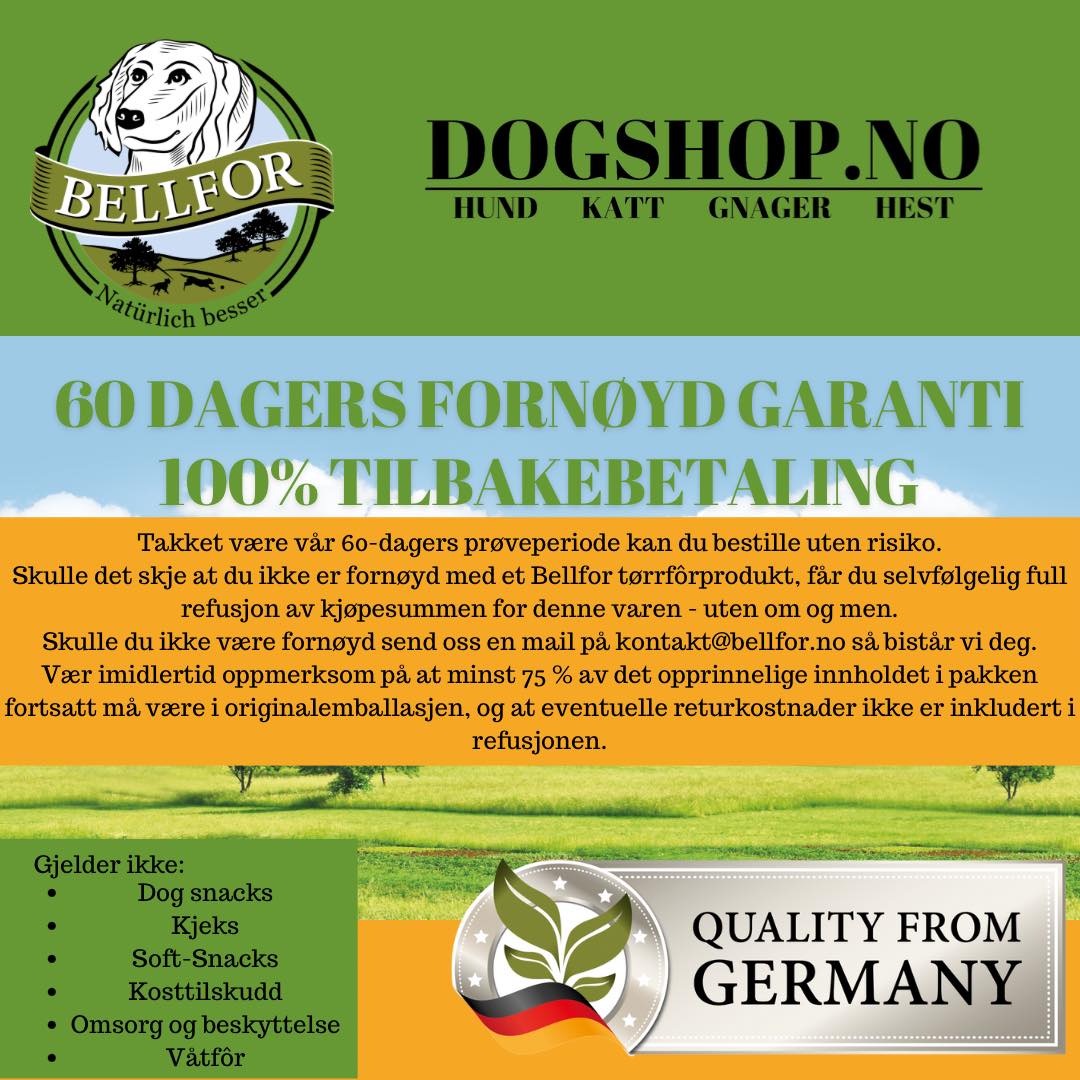 Bellfor Kaldpresset med And er et skånsomt, kornfritt hundefôr utviklet for hunder med sensitiv mage, allergi eller fôrintoleranse. Fôret er kaldpresset for å bevare næringsstoffer og sikre høy fordøyelighet, samtidig som belastningen på mage og tarm reduseres.