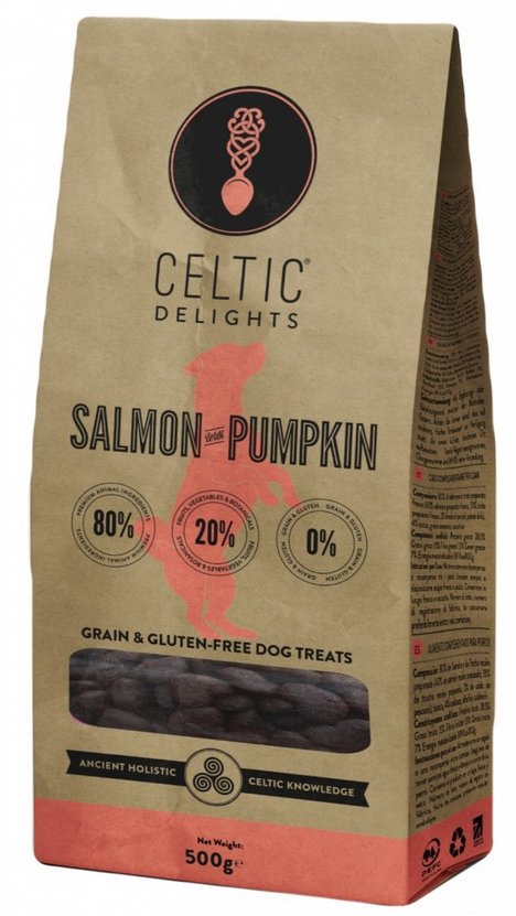 Celtic Delights Laks med gresskar 500gr er et snack til hund.