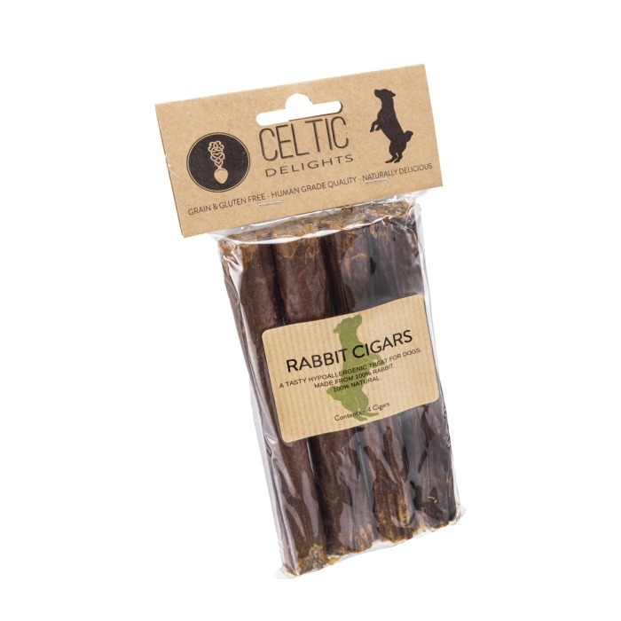 Celtic Delights Sigar Kanin er en eksklusiv tyggegodbit laget av 100 % kaninkjøtt. Hypoallergenisk, med én proteinkilde og høy kvalitet. Laget av kjøtt av menneskelig kvalitet – perfekt som kos når som helst på dagen.