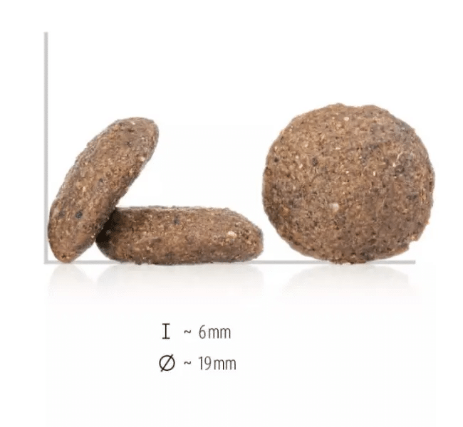 Råprotein 23,5 %, råfett 14,0 %, råfiber 3,0 %, råaske 8,0 %, kalsium 1,5 %, fosfor 0,95 %, natrium 0,4 %, kalium 0,8 %, magnesium 0,1 %, omega-6 fettsyrer 3 %, omega-3 fettsyrer 0,3 %