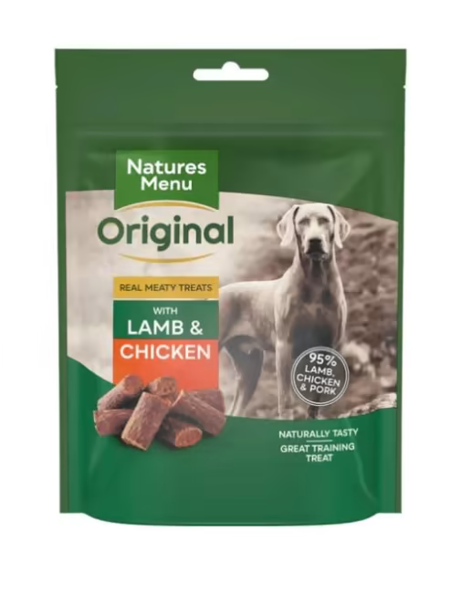 Natures Menu kjøttfulle godbiter er den ultimative treningsbelønningen. Laget med 95% ekte lam og kylling. En uimotståelig belønnings-godbit for hunder som ikke inneholder gluten.