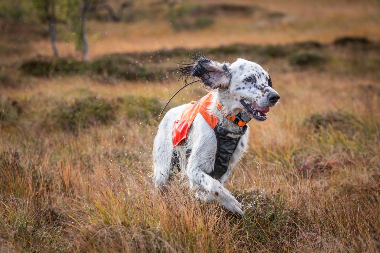 Et slitesterkt jaktdekken med brystklaff i aramidfiber og kraftig ripstop ytterstoff. Markeringsdekkenet har fargede felter på sidene som viser hvilken retning hunden står på lang avstand. Den kraftige oransje fargen, reflekstrykk og striper i 3M refleks gjør hunden godt synlig i terrenget. På ryggen er det en løkke for feste av sporline. Nederst har markeringsdekkenet spiler som sørger for at det holder fasongen.