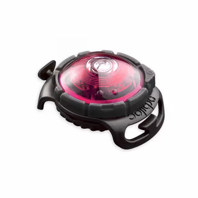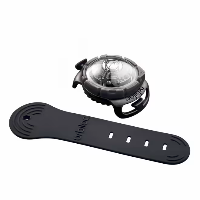 Orbiloc Dual Safety Light er en type sikkerhetsbelysning som man fester til hundens halsbånd og synlig meget godt på lang avstand (opptil 5 km). Selv om den er liten og veier bare 19 gram og er derfor også egnet for mindre hunder. Du kan velge mellom konstant lys eller blinkende lys, den tåler vann og både ekstrem varme og kalde temperaturer og har en lang batterilevetid. Pakken inkluderer en elastisk og slitesterk gummiholder som man fester lampen i. Festeøyene på holderen kan tres på et smykke som er opptil 24 mm bredt og 4 mm tykt. Produktinformasjon:
