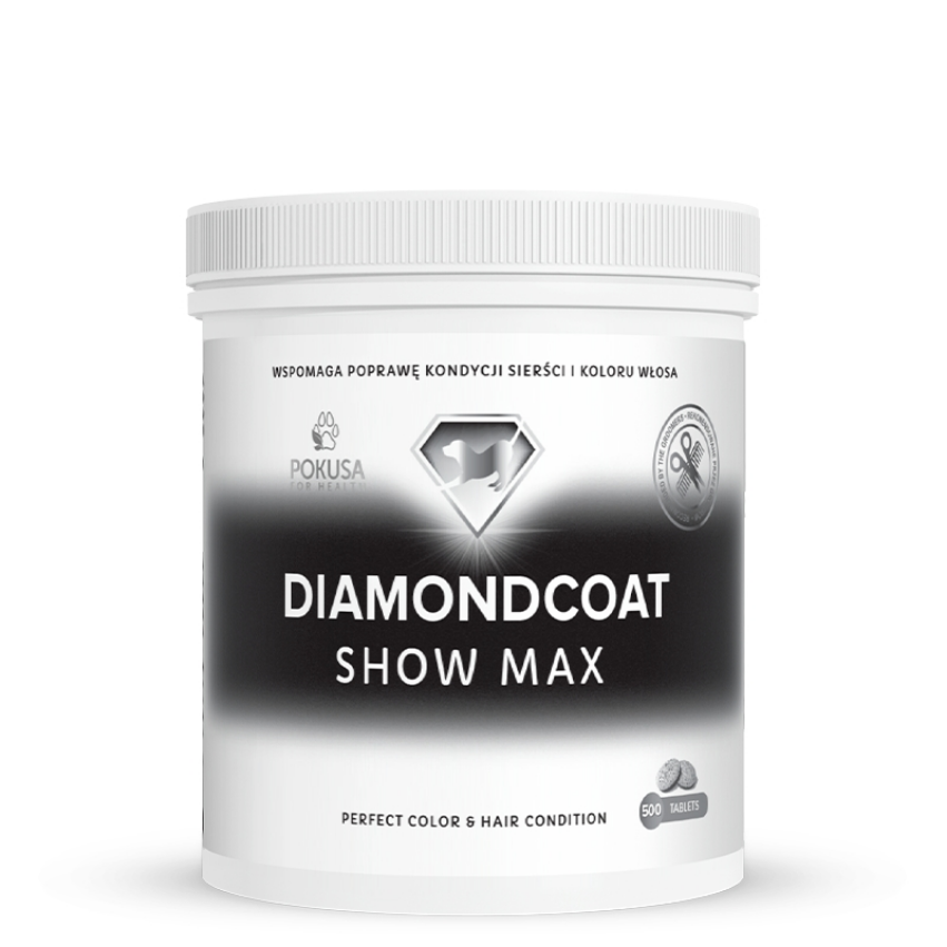 Pokusa DiamondCoat ShowMax 500 Tabletter er et kosttilskudd til hund.