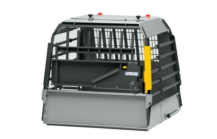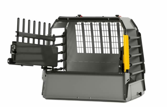 MIMSafe Variocage Compact Enkeltbur er laget for kjøretøy med en høy bagasjeromskant, og døren på buret er derfor forhøyet med 23 cm.
