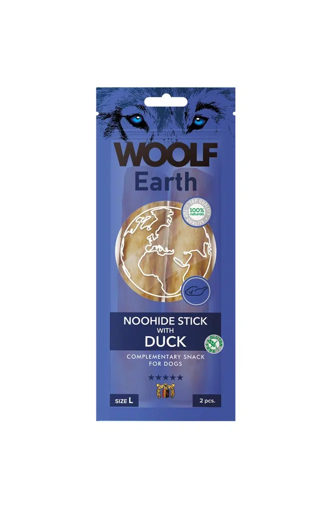 Noohide Earth Duck er et naturlig tyggeprodukt utviklet for å støtte god munnhygiene og tilby en smakfull tyggeopplevelse for hunden din med smaken av andekjøtt. Woolf Earth Noohide er et sunt og naturlig tyggeprodukt for hunder, laget uten kunstige tilsetningsstoffer, konserveringsmidler eller korn. Perfekt for hunder med sensitiv mage. Inneholder gelatin fra oksehud og ben for en fast, men lettfordøyelig konsistens – kombinert med 20 % kjøtt for ekstra smak og næring. Noohide er myk nok for valper, men gir også voksne hunder et trygt og smakfullt alternativ til tradisjonell tygg – samtidig som det støtter tannhelsen.