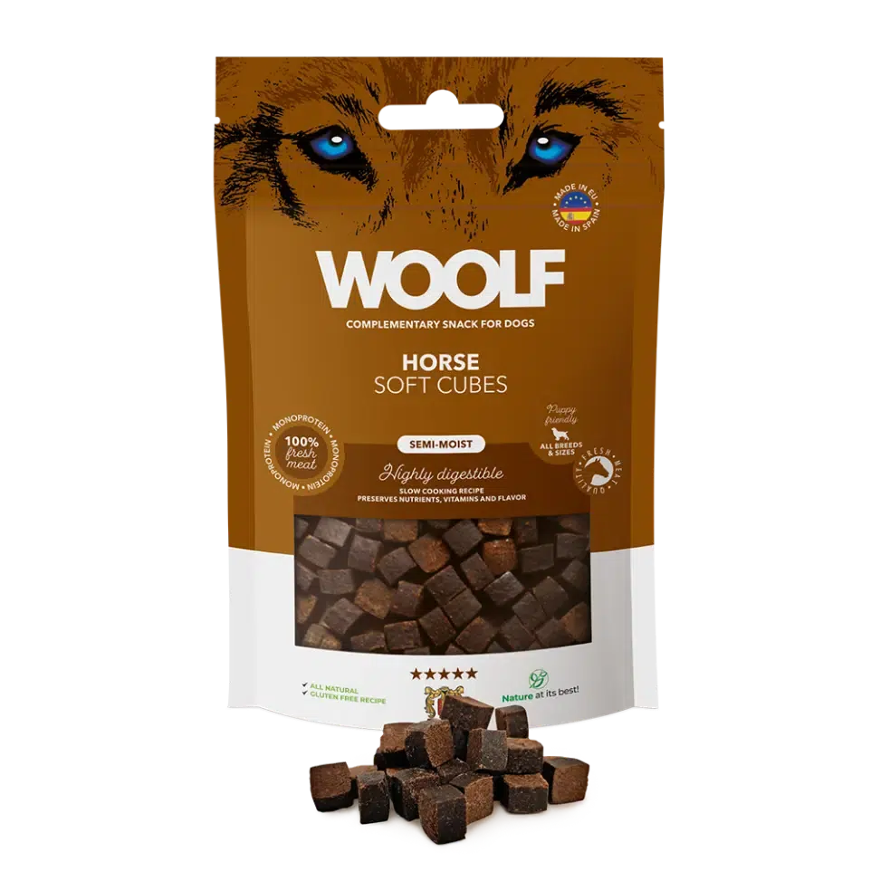 Woolf Soft Cubes Horse 100gr er et snack til hund.