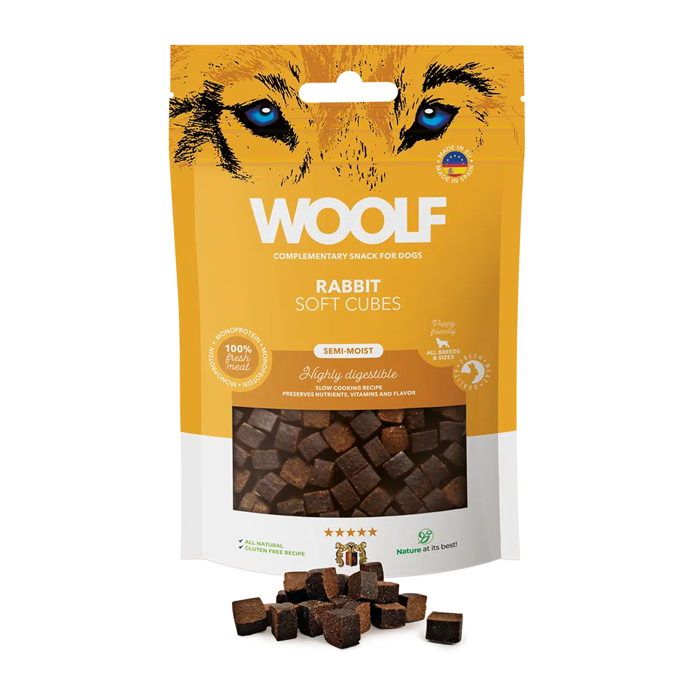Woolf Soft Cubes Rabbit 100gr er et snack til hund.