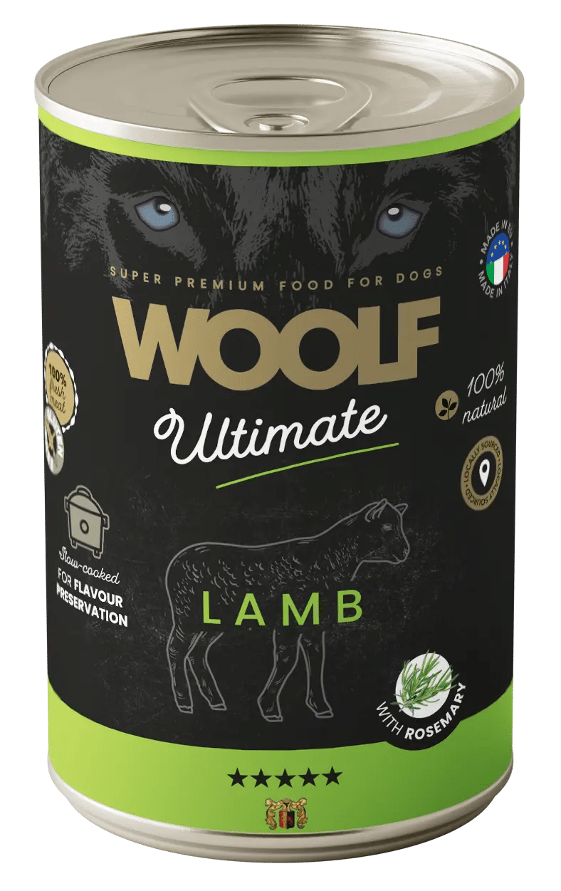 Woolf Ultimate Cannfood Lamb with Rosemary er et fullverdig fór for hunder. Lammekjøtt er rikt på jern og sink, noe som støtter en sunn energiomsetning og styrker immunforsvaret. Rosmarin er en kraftig antioksidant som hjelper til med å beskytte cellene og fremmer god blodsirkulasjon.